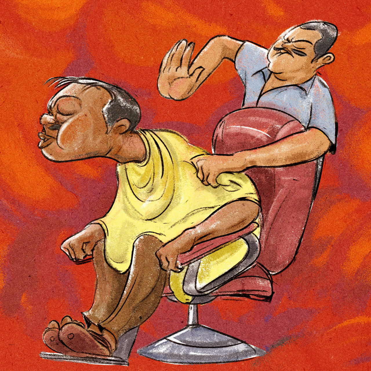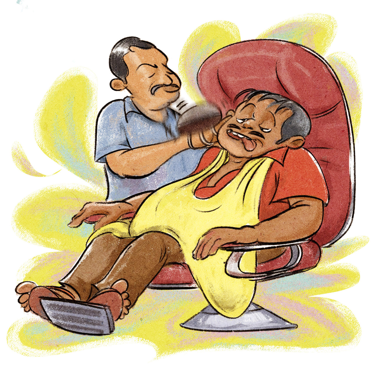 It seemed like this was the first-time-in-a-long-time someone was touching him this way. His eyes almost shut in a dizzying trance when the barber put his vibrating finger inside the guy’s aural orifice. The poor barber was probably used to these reactions off the many such middle-aged men he has had to serve, but he had a neat trick up his sleeve. The massage session drew to a close and in the ultimate act, the barber took off the whirring massager, rubbed his palms, cracked his knuckles, and smacked the dozing post orgasmic customer hard on his back. In less than a second, the guy was getting smacked, shaken and shuffled around in the seat and it was pretty apparent why the barber was suddenly loving every second of his job. Ultimately, it’s safe to say the guy got the complete awakening experience. It’s safer to say, when it comes to me, I could pass on that experience for a few more years, or decades.