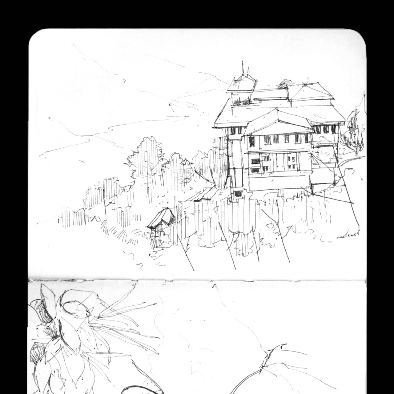 Studio Echostream at that time was basically located on the top of a hill. One day, we took a long walk, circling the tip of the hill (frustrum). On the other side, it was very peaceful as it didn’t face the city, but a valley. I remember making this drawing from the edge of the road, overlooking this valley.