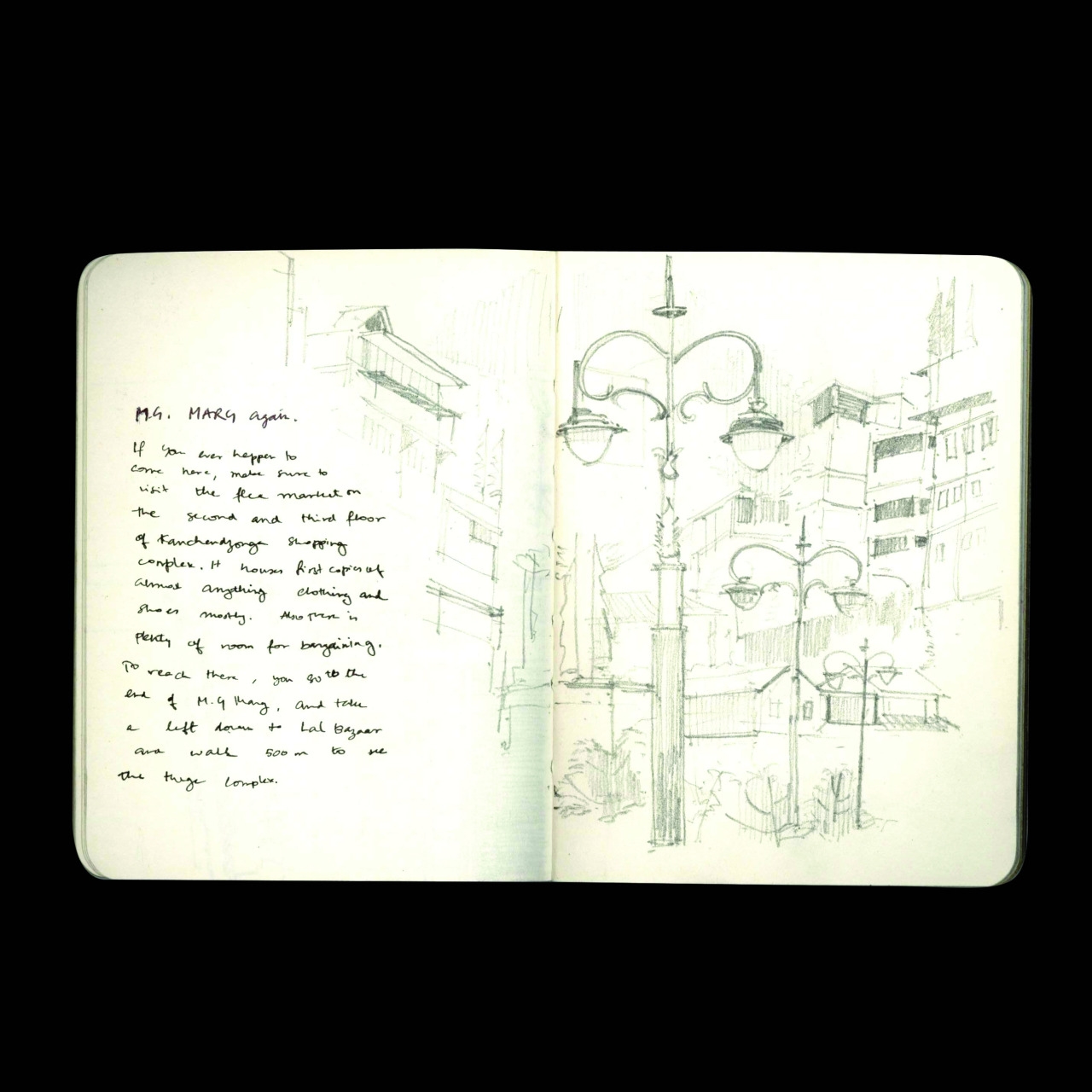 We didn’t go to M. G. Marg as much. On a leisurely Sunday, when we did manage to go there, I was working on this spread much to the disappointment of my friends who wanted to get photos clicked. We did end up getting photos clicked. Good ones.
