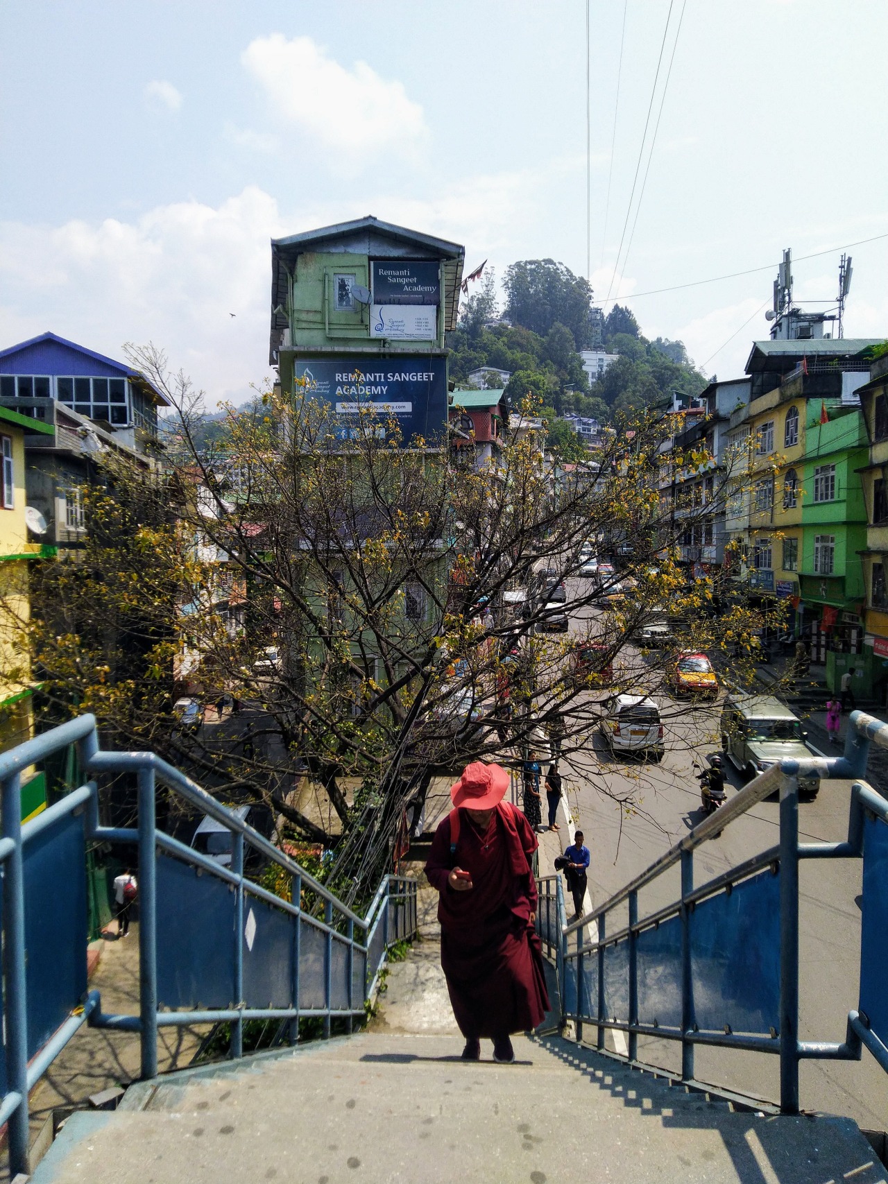 Deorali butterfly bridge. In the evening, this road is essentially a train of taxis crawling at an average of 5km/hr. You can see the famous Gangtok ropeway in the background.